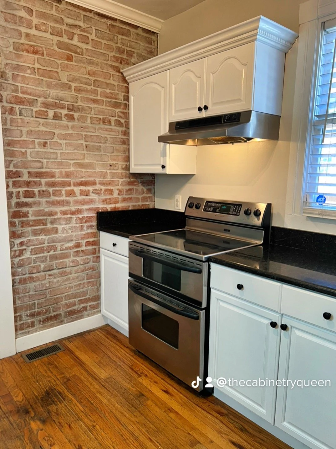 We took this super outdated kitchen and turned it Cloud White and Euro Black Poly with new self closing hinges and black hardware